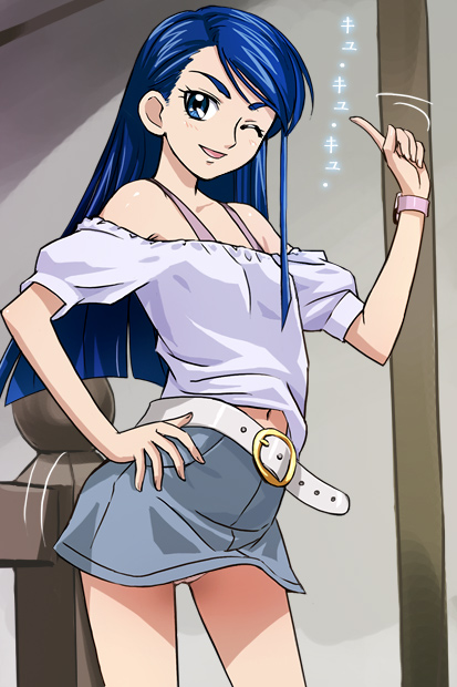 mikazukimo, original, 1girl, apron, blush, brown eyes, brown hair, female focus, hime cut, japanese clothes, long hair, smile, solo, thighhighs, very long hair, waving, white thighhighs