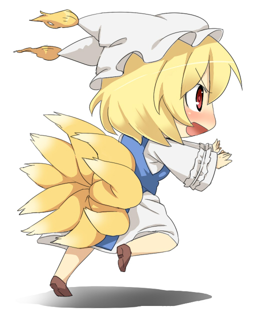 1girlanimal earsanimal hatblonde hairchibifemale focusfox earsfox tailfull bodyhatlong sleevesmob caprunningshoesshort hairsolotailtasselwhite backgroundwide sleeves