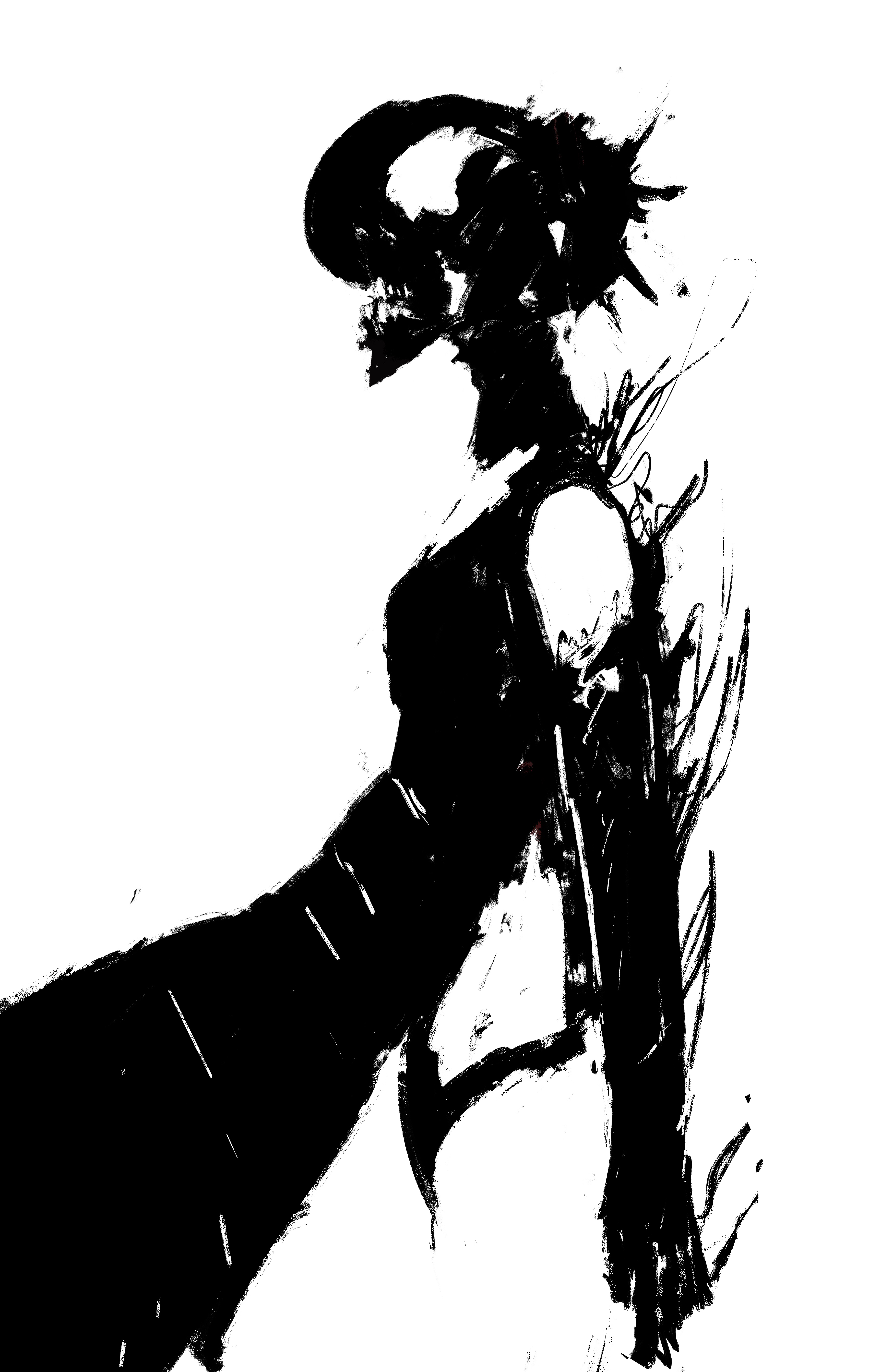 1girlabstractapronelbow glovesfrom sideglovesgreyscalemonochromesimple backgroundsolowhite backgroundwogxkzcbeqlvrii