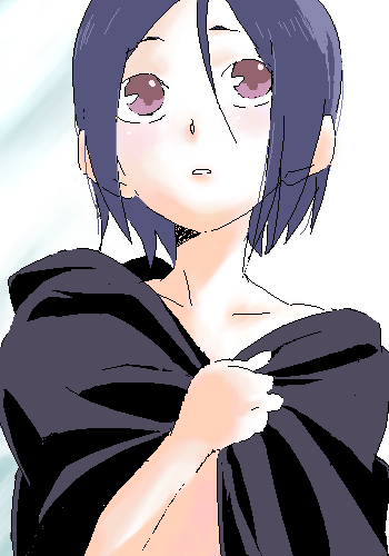 00s1girlbed sheetblack hairblanketblue haircollarbonecovering privatesfemale focusnaked sheetnudenude coveroekakipurple eyesred eyesshort hairsolo