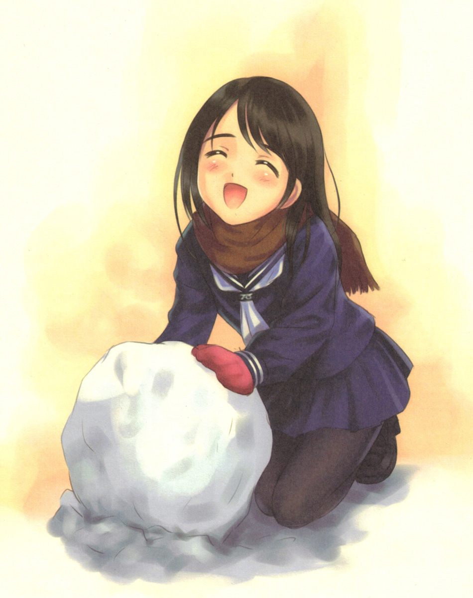 1girlbrown scarfclosed eyesfemale focusglovespantyhosescarfschool uniformserafukusmilesnowballsolo