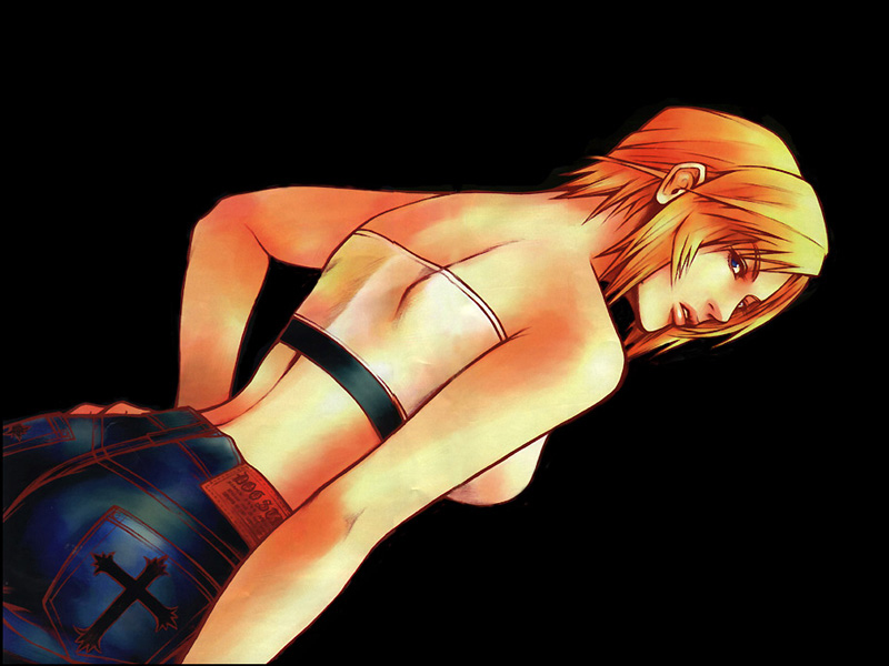 1girlassbare shouldersbeltbikinibikini top onlyblonde hairblue eyesdenimfemale focusjeanslooking at viewerlooking backpantssoloswimsuit