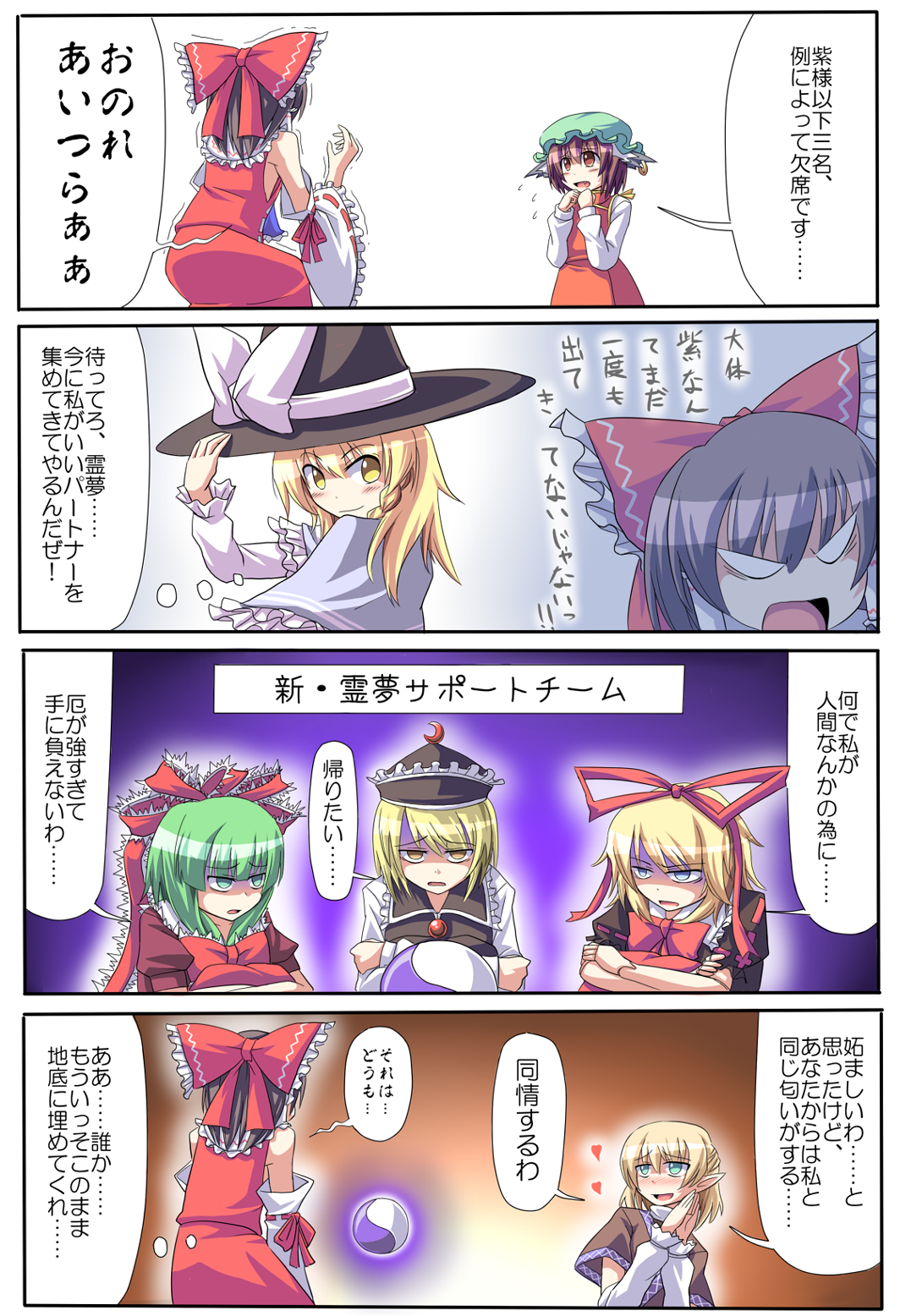 chenhakurei reimukagiyama hinakirisame marisalunasa prismrivermedicine melancholymizuhashi parsee