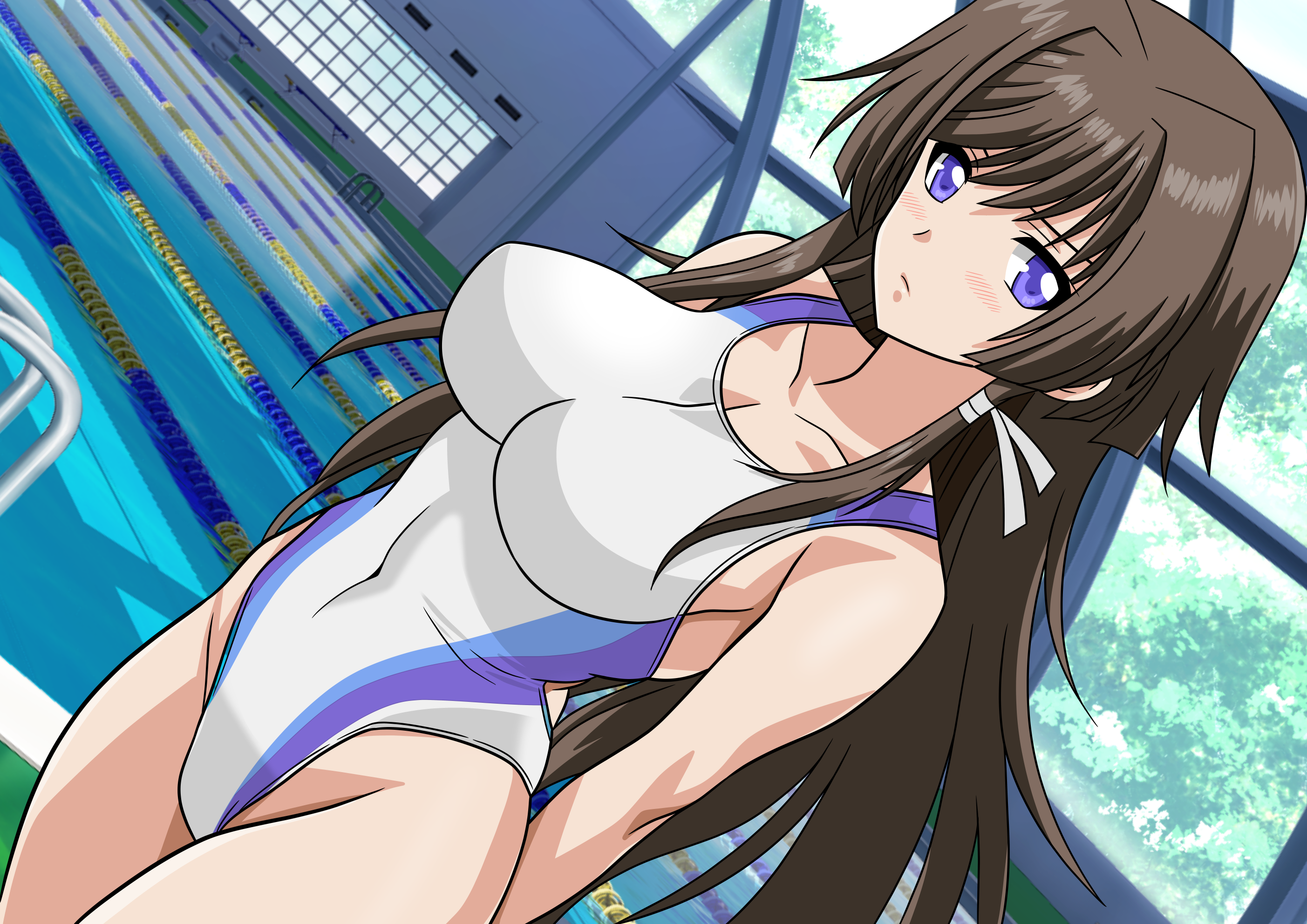 1girlblack hairbreastscollarbonecompetition swimsuitcovered navelcowboy shotdutch angleglass ceilinghighleghighleg one-piece swimsuitindoorslong hairlooking at viewermedium breastsone-piece swimsuitpoolpool ladderpurple eyessolostandingswimsuittwo-tone swimsuitwhite one-piece swimsuit