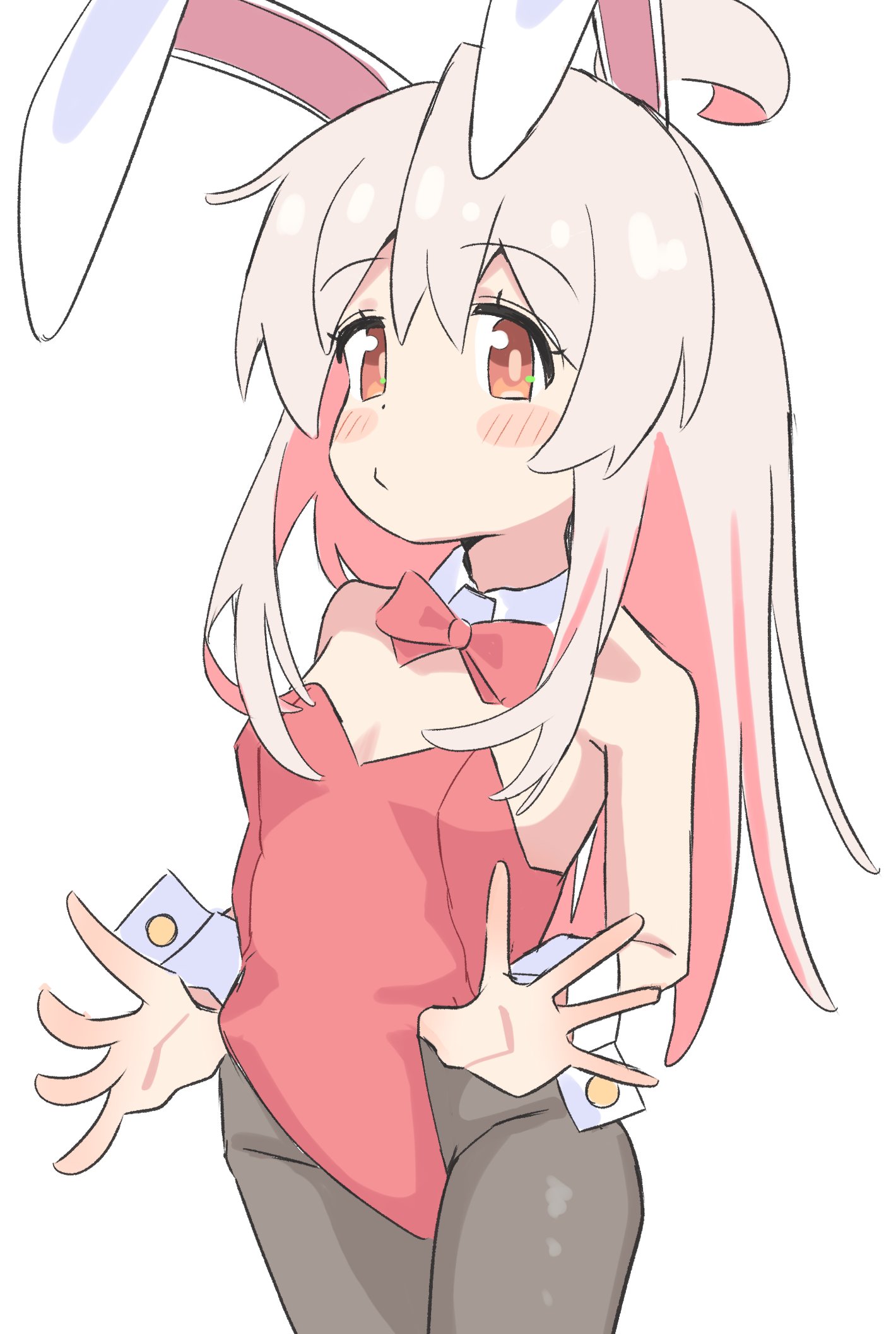 1girlahogeanimal earsbare armsbare shouldersblack pantyhoseblush stickersbowbowtiebreastsbrown eyescowboy shotdetached collarhair between eyesleotardlong hairofficial alternate costumepantyhosepink hairplayboy bunnypoutrabbit earsred bowred bowtiered leotardsimple backgroundsmall breastssolostraplessstrapless leotardwhite backgroundwrist cuffs