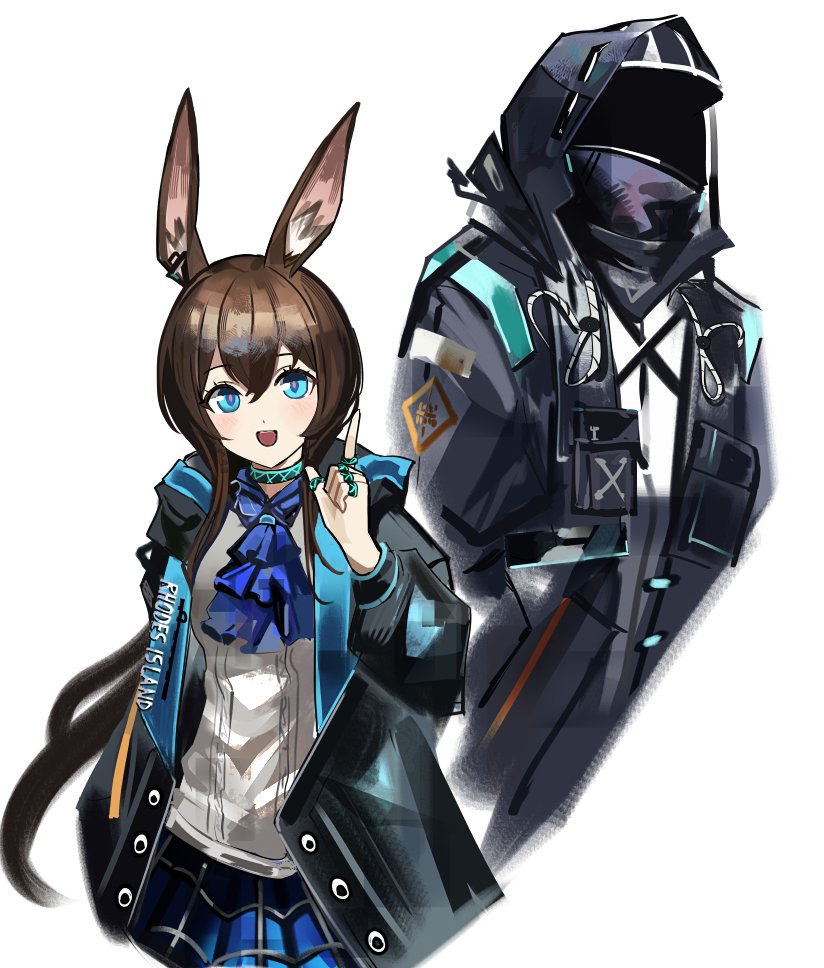 jimmy madomagi, kagura mea, kagura gumi, commentary request, highres, 1girl, argyle clothes, argyle skirt, balloon, black hat, blue bow, blue dress, blue eyes, blush, bow, brown sky, building, closed mouth, cowboy shot, dress, elbow gloves, facial mark, flag, frown, gloves, gold trim, hair bow, hat, heart, heart facial mark, heterochromia, holding, holding flag, long hair, looking to the side, open mouth, shako cap, sleeveless, sleeveless dress, smile, solo, sunset, very long hair, virtual youtuber, white dress, white gloves, white hair, yellow eyes