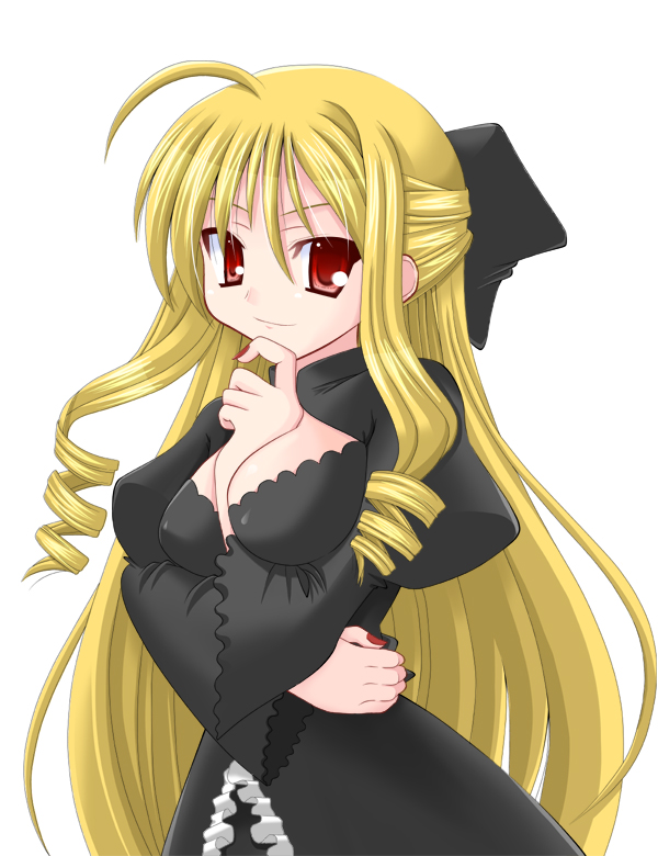 00s1girlbetween breastsblonde hairbreastsdressfemale focusfrillslarge breastslong hairred eyessolo