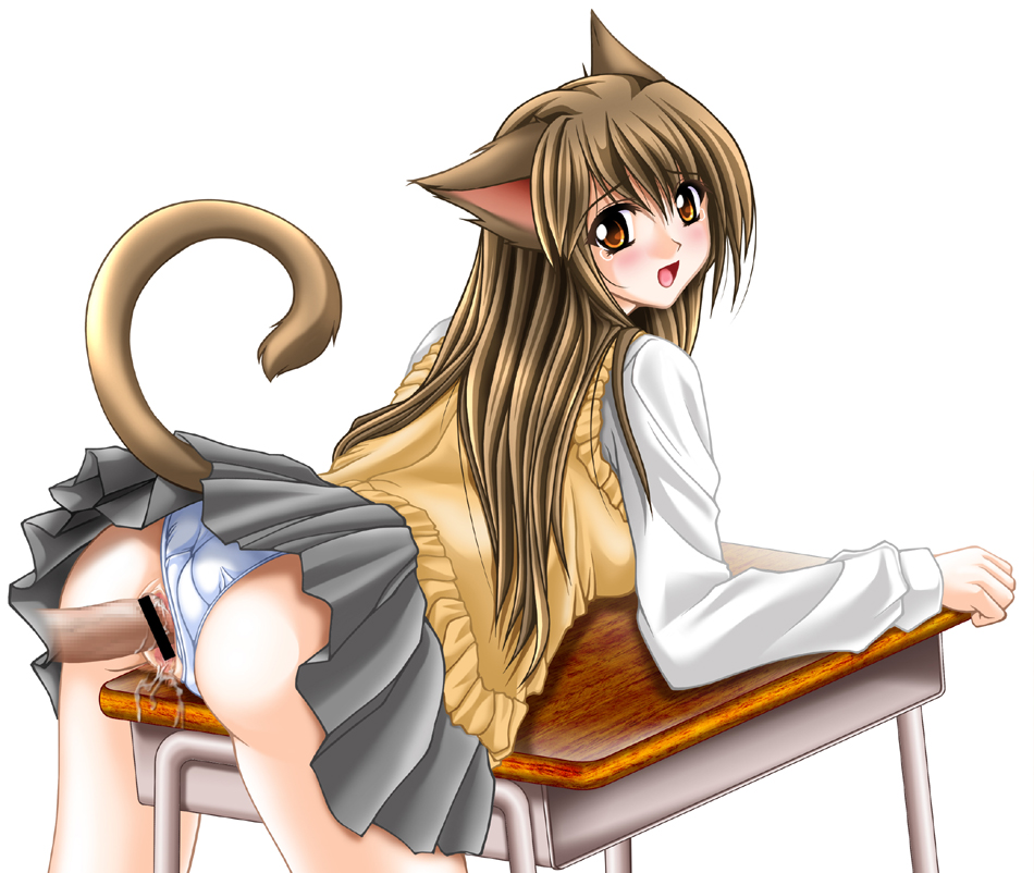 1girlanimal earsassbent overblushbrown eyesbrown haircat earscat tailcensoredclothing asidecumcum in pussydeskfrom behindhappy sexheterolong hairlooking backpantiespanties asidepenispointless censoringpussypussy juiceschool uniformserafukusexsolo focustailtearsunderwearupskirtvaginalwhite panties