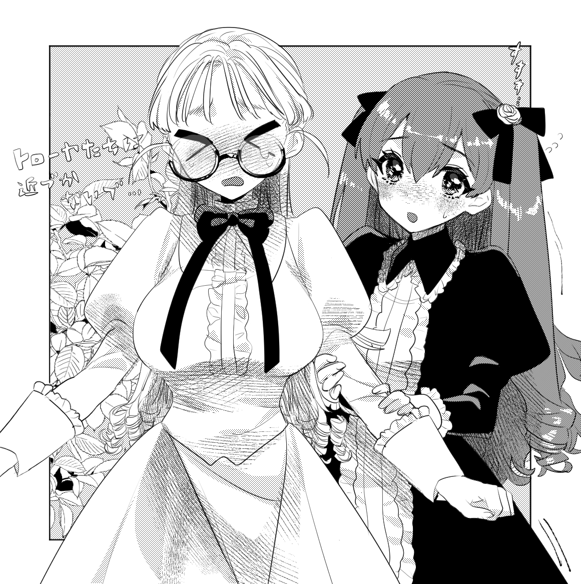 nekojarashi (yuuga), original, absurdres, highres, traditional media, 1girl, black hair, closed mouth, hairband, interlocked fingers, long hair, long sleeves, looking at viewer, outdoors, own hands together, smile, solo, steepled fingers, upper body