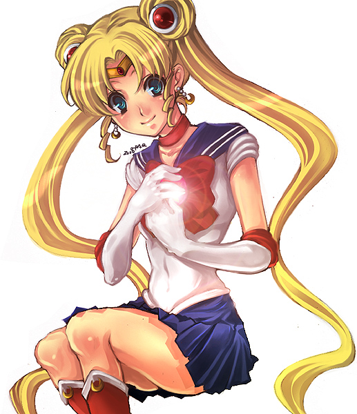1990s (style)1girlblonde hairblue eyesblue sailor collarblue skirtbootsbowchokercircletearringsfemale focusglovesjewelryknee bootslong hairmagical girlred bowretro artstylesailor collarskirtsolovery long hairwhite gloves
