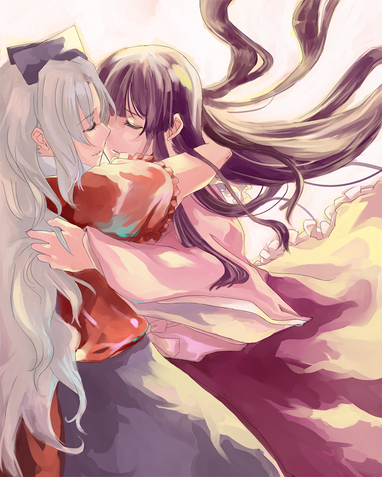 2girlsblack hairclosed eyesfemale focushair spread outhathugimminent kisslong hairmultiple girlsyuri