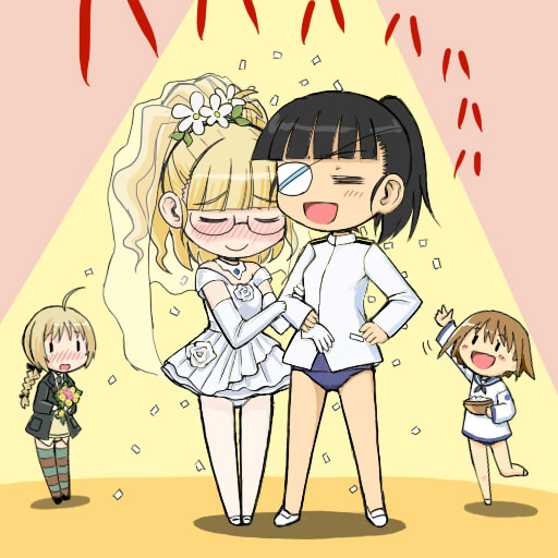 00s4girlsahogealternate hairstyleblack hairblonde hairblushbridal veilbridechibiclosed eyesconfettidresseyepatchflowerglassesmilitarymilitary uniformmultiple girlsno pantsone-piece swimsuitpantiespantyhoseponytailschool swimsuitschool uniformserafukustriped clothesstriped thighhighsswimsuitswimsuit under clothesthighhighsunderwearveilweddingwedding dresswife and wifeyuri
