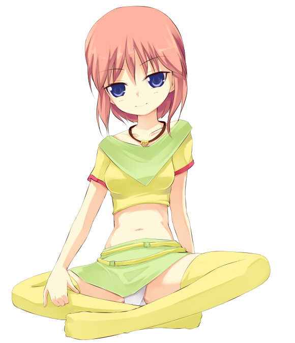 kuro (be ok), hiiragi kagami, lucky star, 00s, 1girl, blue eyes, blush, female focus, looking back, panties, purple hair, ribbon, solo, striped clothes, striped panties, topless female, tsurime, twintails, underwear, wedgie