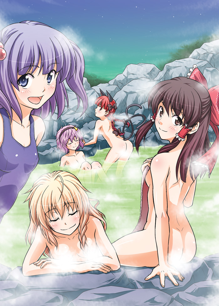 flipflops (artist), takahata yuki, cirno, flandre scarlet, hakurei reimu, hong meiling, ibuki suika, izayoi sakuya, kirisame marisa, letty whiterock, patchouli knowledge, remilia scarlet, touhou, ornament, silver hair, 6+girls, ^ ^, apron, bat wings, bell, beret, black hair, blonde hair, bloomers, bow, box, braid, christmas, christmas tree, clock, clock tower, closed eyes, comic, detached sleeves, donation box, dress, fairy, female focus, hair bow, hat, horns, indoors, long hair, maid, maid apron, mansion, multiple girls, open mouth, outdoors, purple eyes, purple hair, red eyes, red hair, scarlet devil mansion, short hair, shovel, siblings, silent comic, sisters, skirt, smile, snow, snowball, star (symbol), torii, tower, tree, trigram, umbrella, underwear, wings, witch hat, worktool