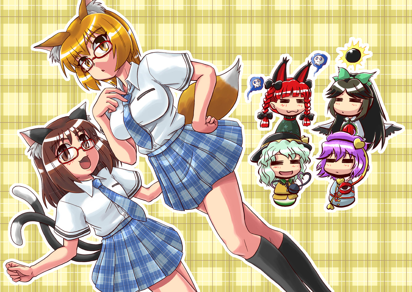 :31boy6+girlsalternate costumeanimal earsbespectacledblack hairblonde hairbraidbrown eyesbrown haircat earscat girlcat tailcontemporaryfangfemale focusfox earsfox tailglassesgreen hairhatmultiple girlsmultiple tailsnecktiepurple hairred hairschool uniformserafukuskulltailtwin braidsyellow eyes