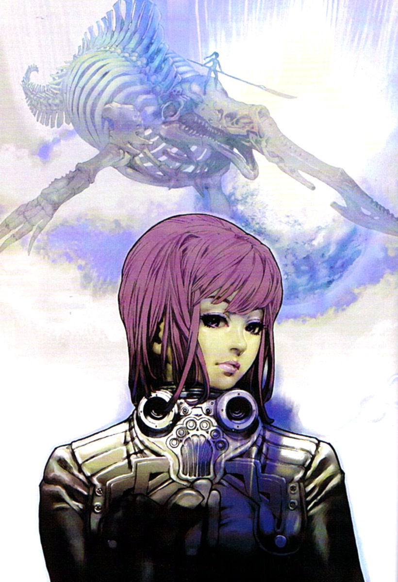 1girlexpressionlessfemale focuslong sleeveslooking at viewermilitarymilitary uniformmonsterpurple hairshaded faceshort hairsimple backgroundsolowhite background