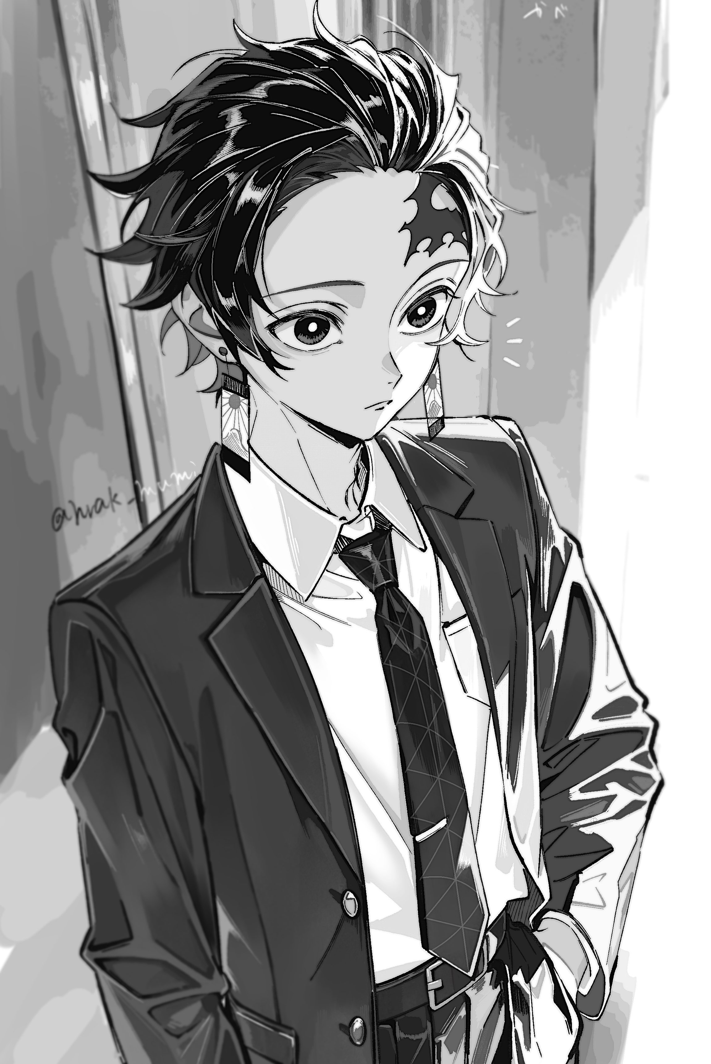 1boyalternate costumebeltbright pupilsclosed mouthcollared shirtearringsfacial tattoogreyscalehanafuda earringshand in pocketjacketjewelrymale focusmonochromenecktieshirtshort hairsolotattootwitter usernameupper bodywhite pupilswhite shirt