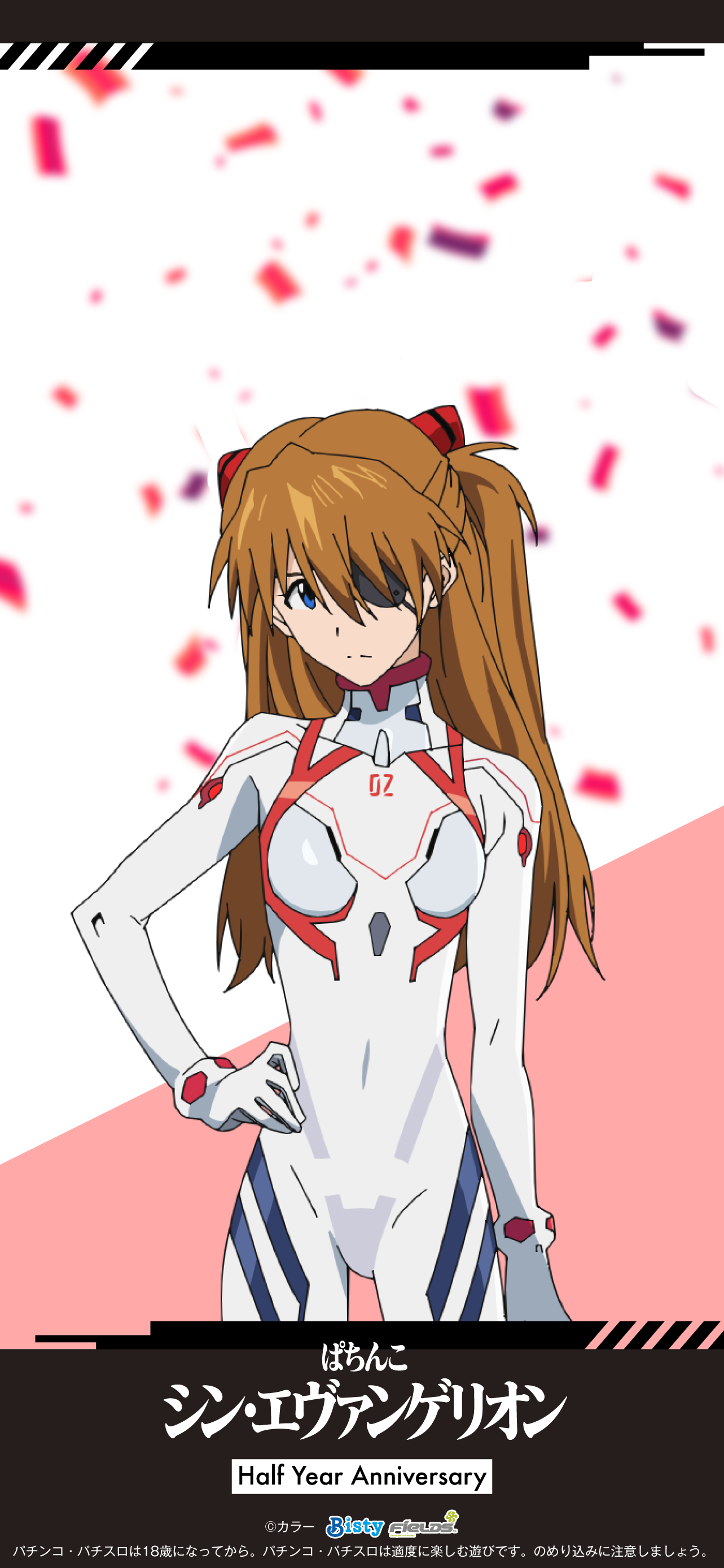 1girlblue eyesbodysuitbreastsclosed mouthcopyright namecovered naveleyepatchfrownhair between eyeshair ornamenthairpodshand on own hipinterface headset (evangelion)long hairlooking at viewermecha pilot suitmedium breastsofficial alternate costumeplugsuit (evangelion)red hairsimple backgroundsolostandingwhite bodysuit