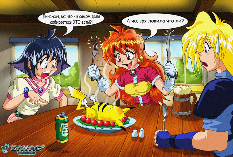 1boy2girlscreature as foodcrossovergen 1 pokemonmultiple girlspokemon (creature)retro artstylerussian text
