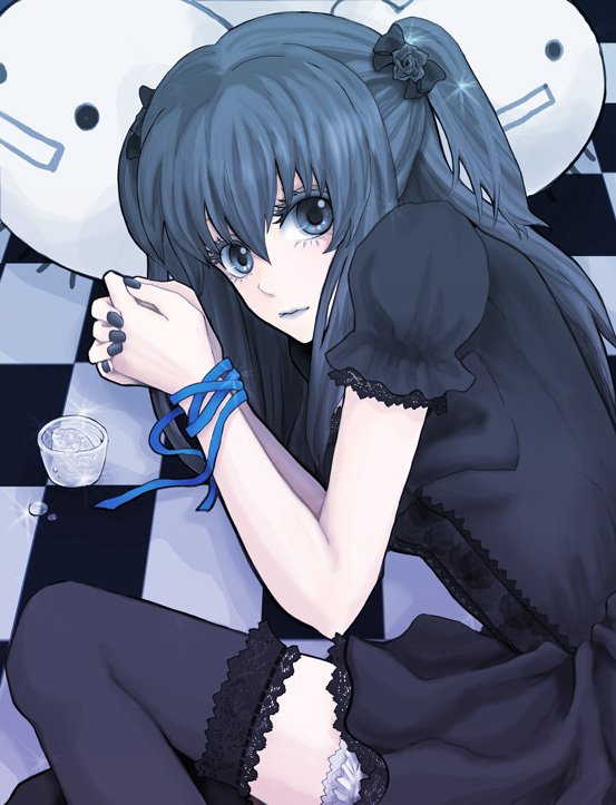 1boyblack haircrossdressingcrossdressing (mtf)dressgoth fashiongothic lolitagrey nailslolita fashionlong hairmale focusnail polishskirtsolothighhighstrap
