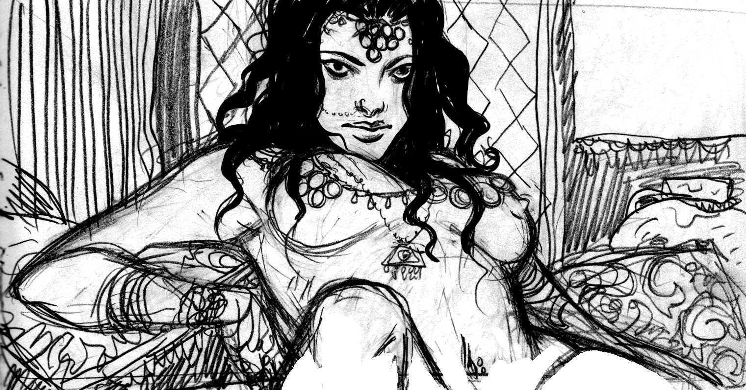 shaokao lajitong, iuno (wuthering waves), wuthering waves, absurdres, commentary, highres, 1girl, ahoge, ancient greek clothes, armlet, black skirt, blue eyes, blue hair, breasts, closed mouth, from side, gold bra, greco-roman clothes, jewelry, laurel crown, long hair, looking at viewer, looking to the side, medium breasts, skirt, smile, solo, twintails, vambraces
