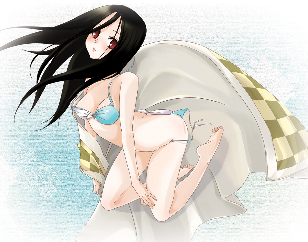 00s1girlbarefootbikiniblack hairblanketblue bikiniblushbreastsfemale focuslong hairnipple slipnipplespale skinred eyesside-tie bikini bottomsmall breastssoloswimsuitwardrobe malfunction