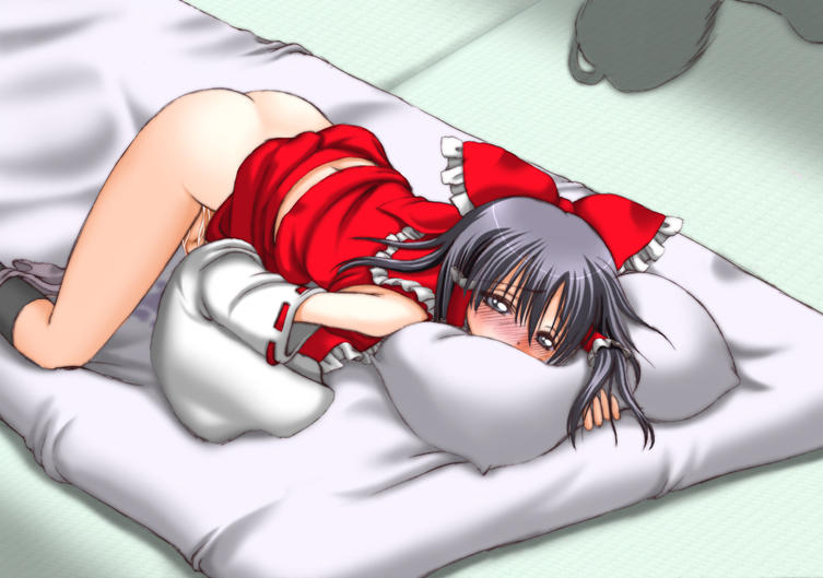 mikage natsu, houraisan kaguya, touhou, 1girl, black hair, bow, bowtie, cowboy shot, female focus, long hair, long sleeves, looking at viewer, red eyes, sidelocks, solo, very long hair, white bow, white bowtie, wide sleeves