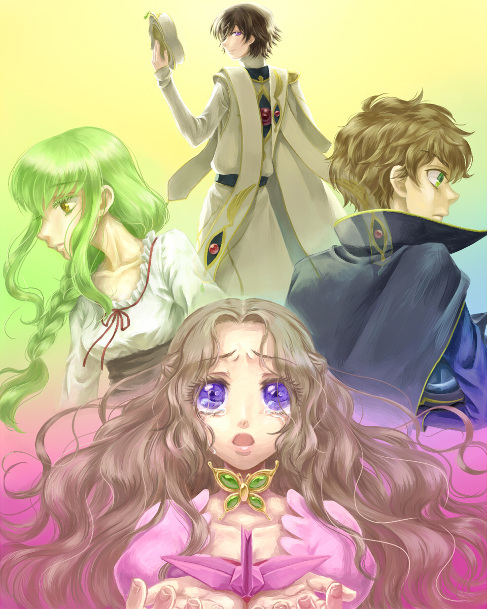 yukke, dorothy (akazukin chacha), elizabeth (akazukin chacha), seravi (akazukin chacha), akazukin chacha, lowres, translated, 1990s (style), 1boy, 2girls, doll, green eyes, green hair, hat, long hair, multiple girls, pink hair, purple eyes, whispering
