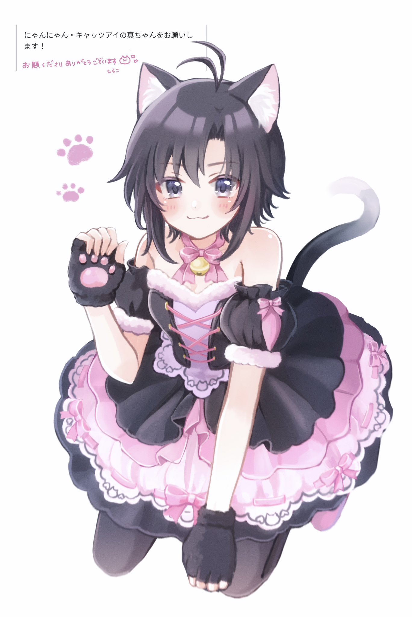 :31girlalternate costumeanimal ear fluffanimal earsantenna hairbellblack dressblack glovesblack hairblushbowbowtiecat earscat tailclosed mouthdetached sleevesdressfingerless glovesfrilled dressfrillsfull bodyglovesgrey eyeskneelinglayered dresslooking at viewerneck bellnyannyan cat's eye (idolmaster)paw printpawpadspink bowpink bowtiepink dresspuffy detached sleevespuffy sleevesrequest insetshort hairsmilesolostraplessstrapless dresstailtwo-tone dress