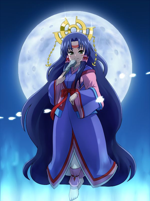 00s1girlbarefootblue hairbowfacial markfeetfemale focusgreen eyeshair ornamenthand fanjapanese clotheslong hairmoonnightpetalsrobesmilesolovery long hair