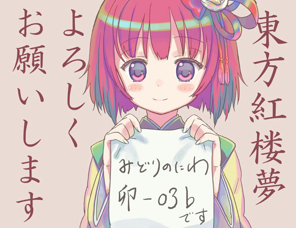 1girlblushfemale focusholdinglong sleeveslooking at viewerpaperred eyesred hairshort hairsimple backgroundsolotareme