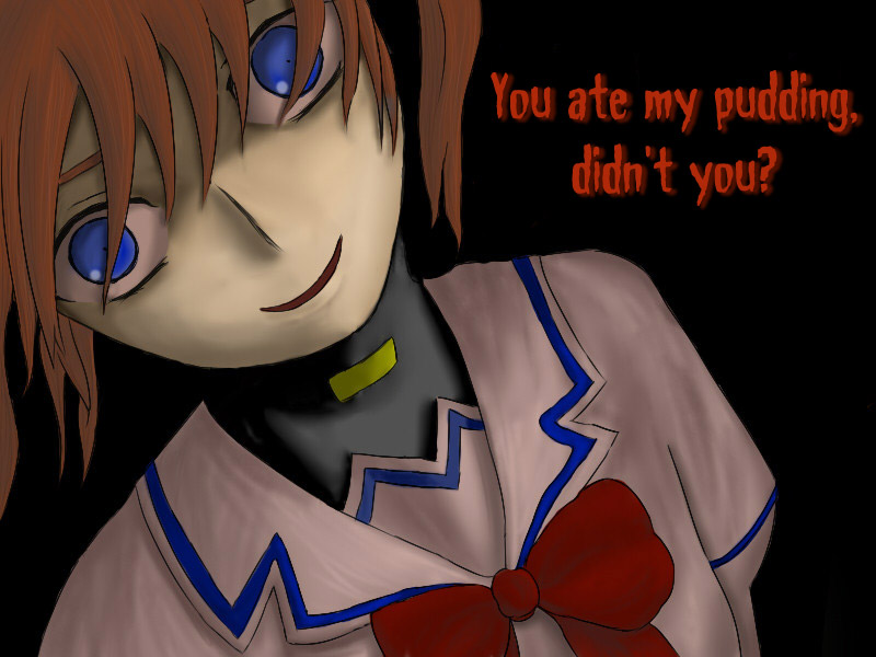 00s1girlblue eyesbowbrown hairenglish textfemale focushead tiltmagical girlpurple eyesred bowred hairsmilesolowhite devilyandere