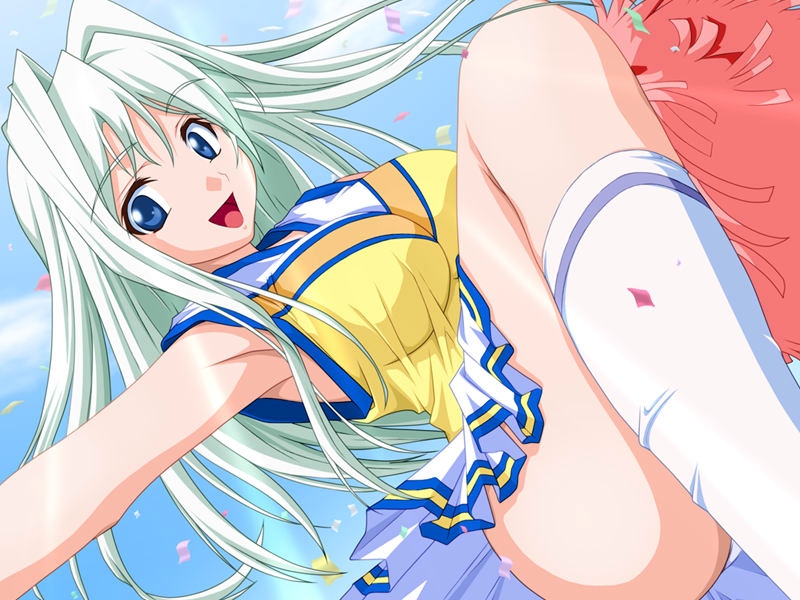 1girlblue eyescheerleaderdutch anglefemale focusgreen hairkneehighslong hairpantiespantyshotpom pom (cheerleading)sockssolounderwear