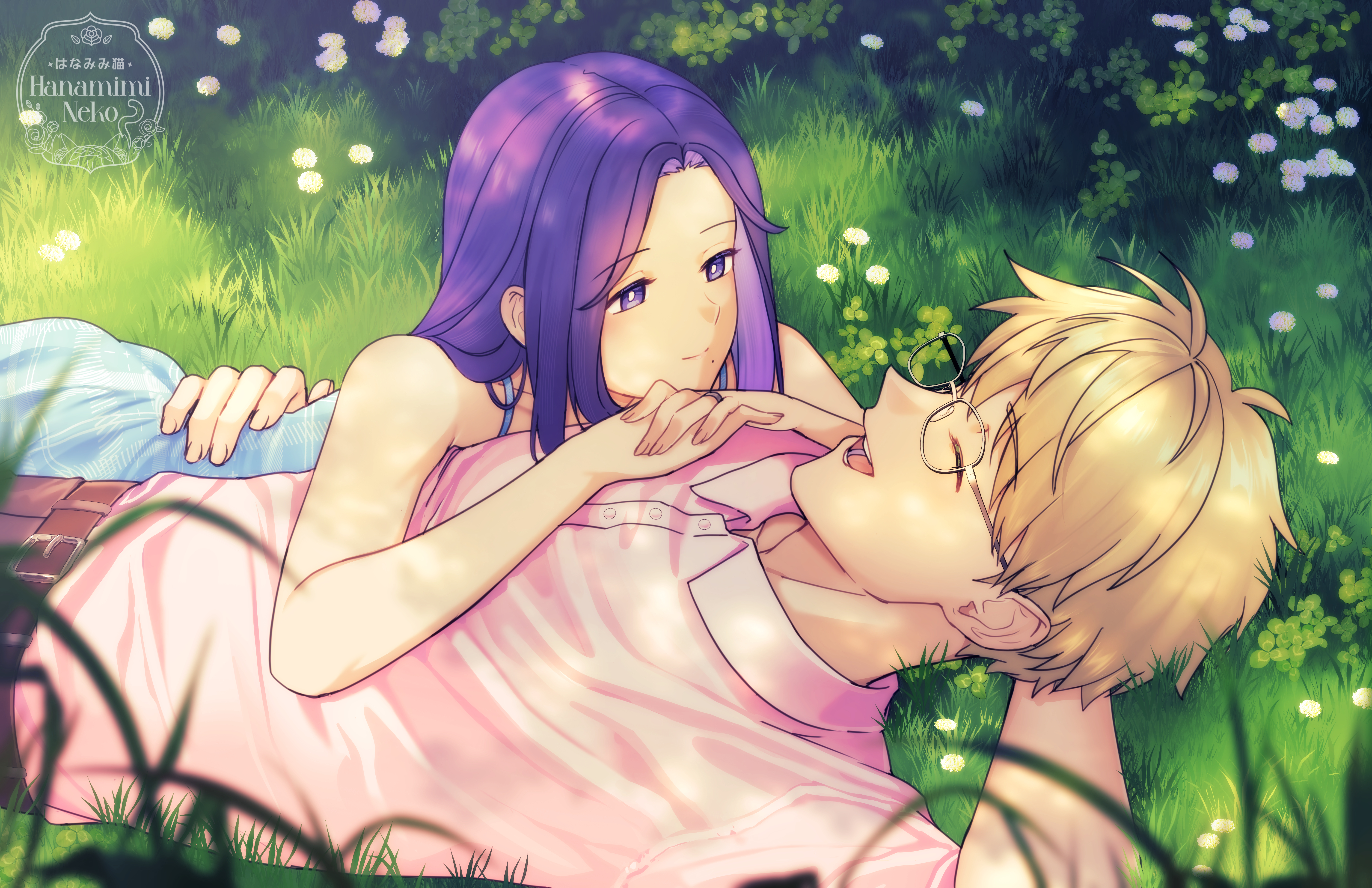 eimu, evangeline a.k. mcdowell, mahou sensei negima!, lowres, translation request, 00s, 1girl, blonde hair, blue eyes, blush, female focus, long hair, nail polish, pink nails, ribbon, solo, vampire
