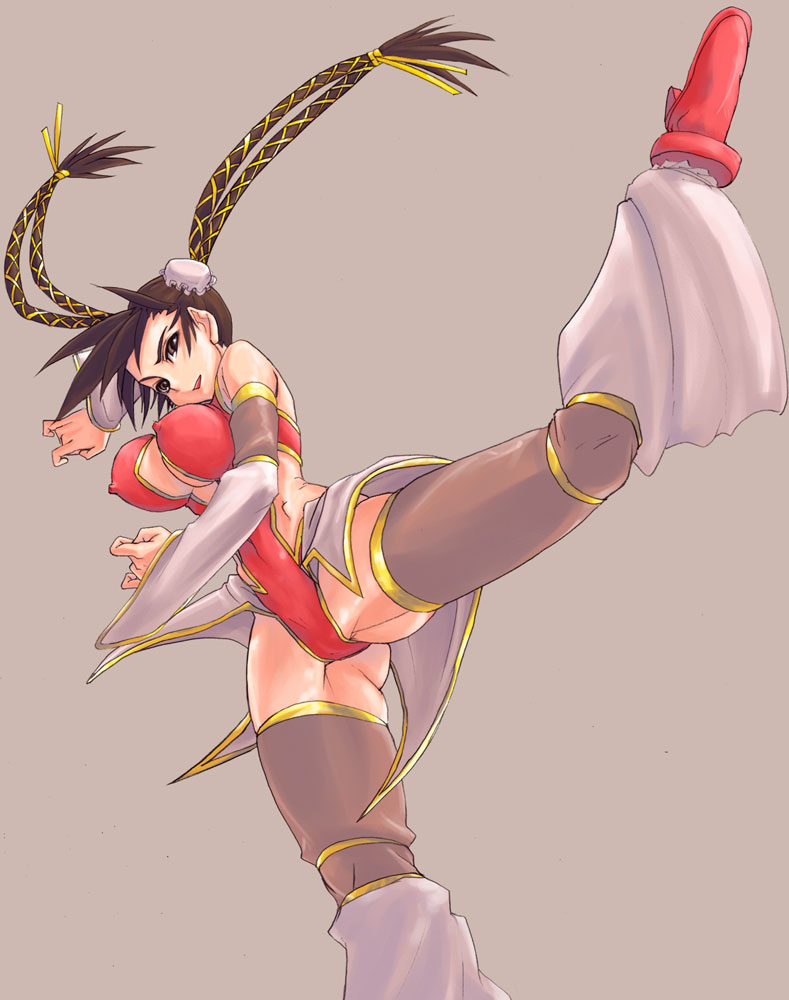 1girlbreastsbun covercovered erect nipplesdouble bunelbow glovesfemale focusgloveshair bunsimple backgroundsolothighhighs