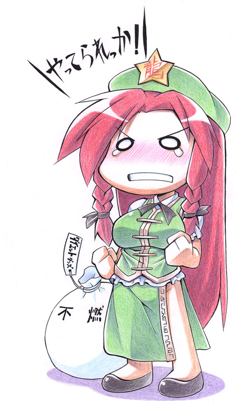 1girlblushbraidbreastschibichina dresschinese clothesdressfemale focushatlarge breastslong hairred hairsolotearstwin braidsvery long hair