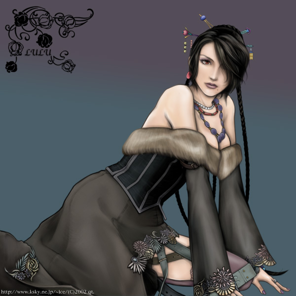 00s1girlbeltblack hairbreastscensoredcleavagedressearringseyeshadowfemale focushair over one eyejewelrylipsticklong hairmakeupmedium breastsmolemole under mouthnail polishnecklacepurple nailsred eyesringsolo