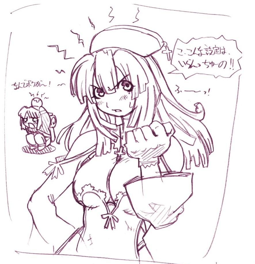 2girlsangrybreastscleavagecrossgloveshead bumplarge breastsmonochromemultiple girlspurple themesketch
