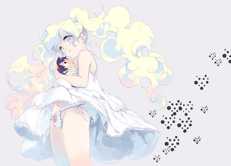 00s1boy1girldressfrillslong hairmulticolored hairpantiesribbonthongtwintailsunderwearvery long hairwindwind lift