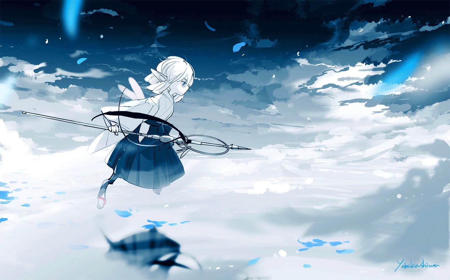 yamamoto nori, hinaichigo, kunkun, rozen maiden, duplicate, 00s, 1girl, blonde hair, bloomers, bow, child, cloud, curly hair, day, doll, female focus, food, fruit, full body, green eyes, hair bow, looking at viewer, name connection, object namesake, pantyhose, pink bow, pink shirt, shirt, short hair, smile, solo, standing, strawberry, underwear, white bloomers, white pantyhose