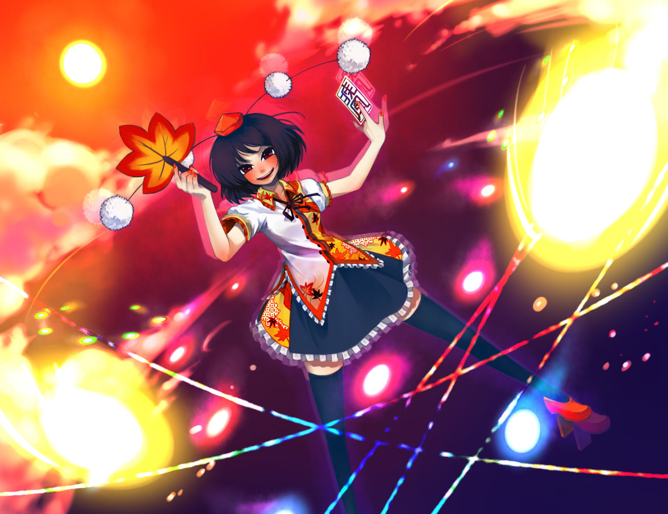 powocy, original, absurdres, commentary, english commentary, highres, 1girl, blonde hair, dress, fish, green eyes, grin, long hair, long sleeves, pinafore dress, red dress, ripples, shirt, skirt hold, sleeveless, sleeveless dress, smile, solo, wading, water, white shirt
