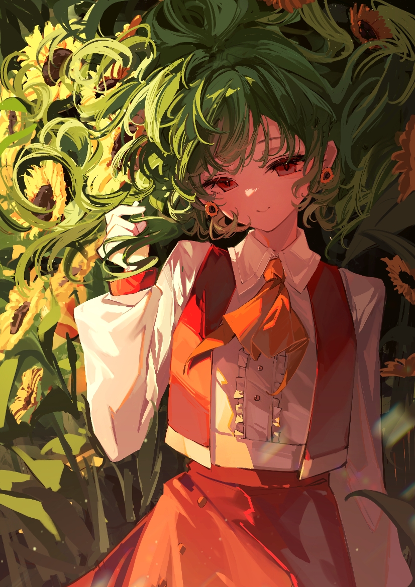 chihiro 2 (artist), meola, hatsune miku, vocaloid, bad id, bad pixiv id, detached sleeves, solo, sunset, twintails