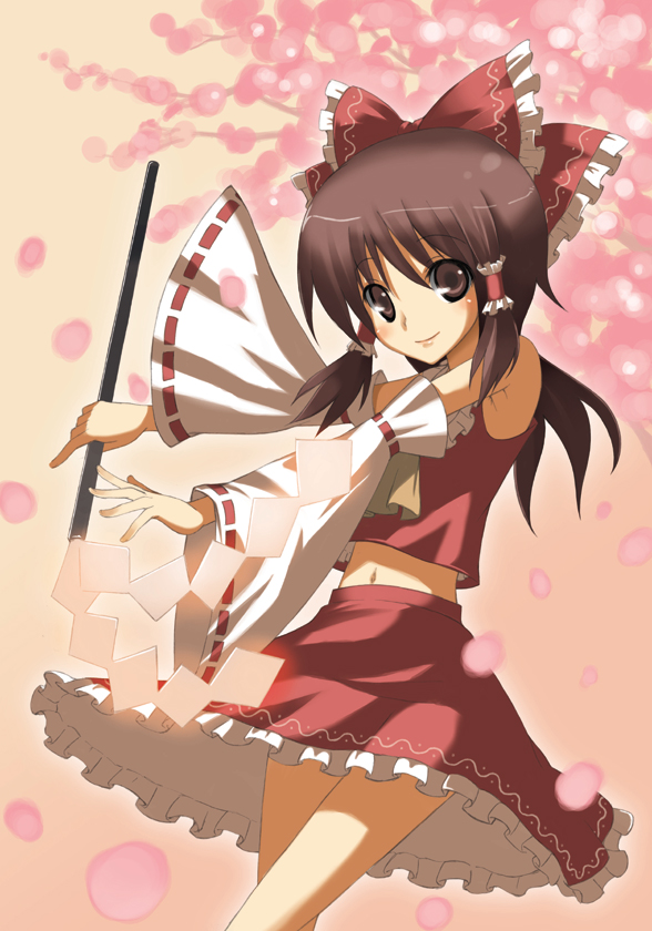1girlascotblushbrown eyesbrown haircowboy shotdetached sleevesfemale focusgoheilong sleeveslooking at viewerred skirtribbon trimribbon-trimmed sleevesskirtsmilesolovest