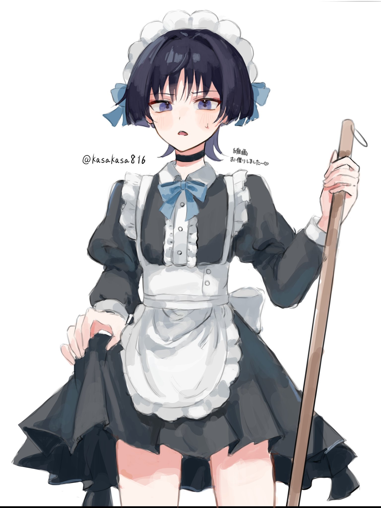 1boy624 itumoalternate costumeapronblack chokerblack dressblack hairblack sleevesblue bowblue bowtieblunt endsblushbowbowtiebroomchokercollarcolored inner haircowboy shotcrossdressingcrossdressing (mtf)dressenmaidedeyelinereyeshadowfrilled apronfrillsgrey hairhair bowhair intakeshand upholdingholding broomjuliet sleeveslong sleeveslooking at viewermaidmaid apronmaid headdressmakeupmale focusmale maidmulticolored hairopen mouthpuffy sleevespurple eyesred eyelinerred eyeshadowskirt holdsolosweatdroptsurimetwitter usernamewaist apronwhite collarwispy bangs