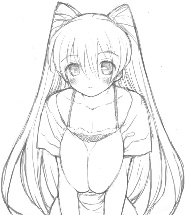 00sblushbreastsbreasts squeezed togethercleavagegreyscalelarge breastslong hairmonochromesketchsolo