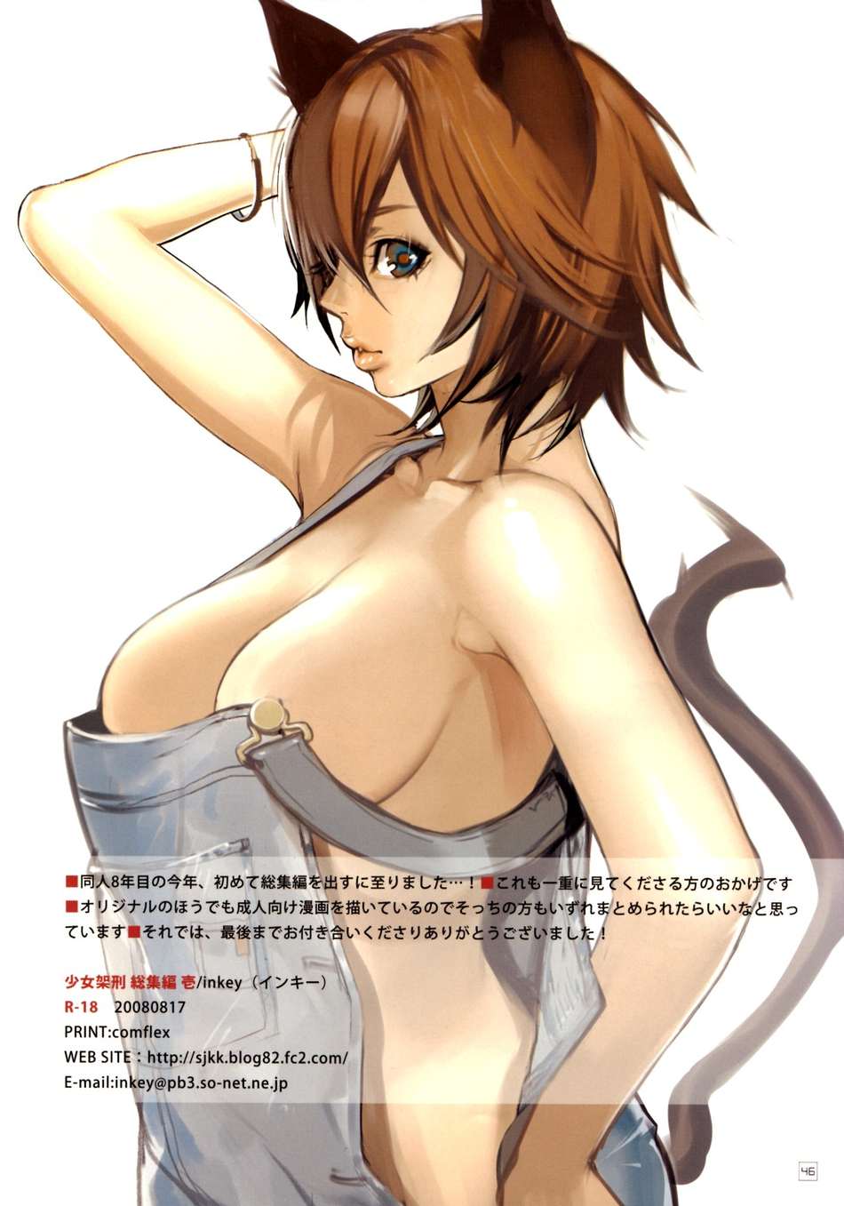 1girlanimal earsbare shouldersbraceletbreastsbrown eyesbrown haircat earscat tailcleavagefemale focusink0717jewelrylarge breastsnaked overallsoverallsshort hairsideboobsolotailundressing