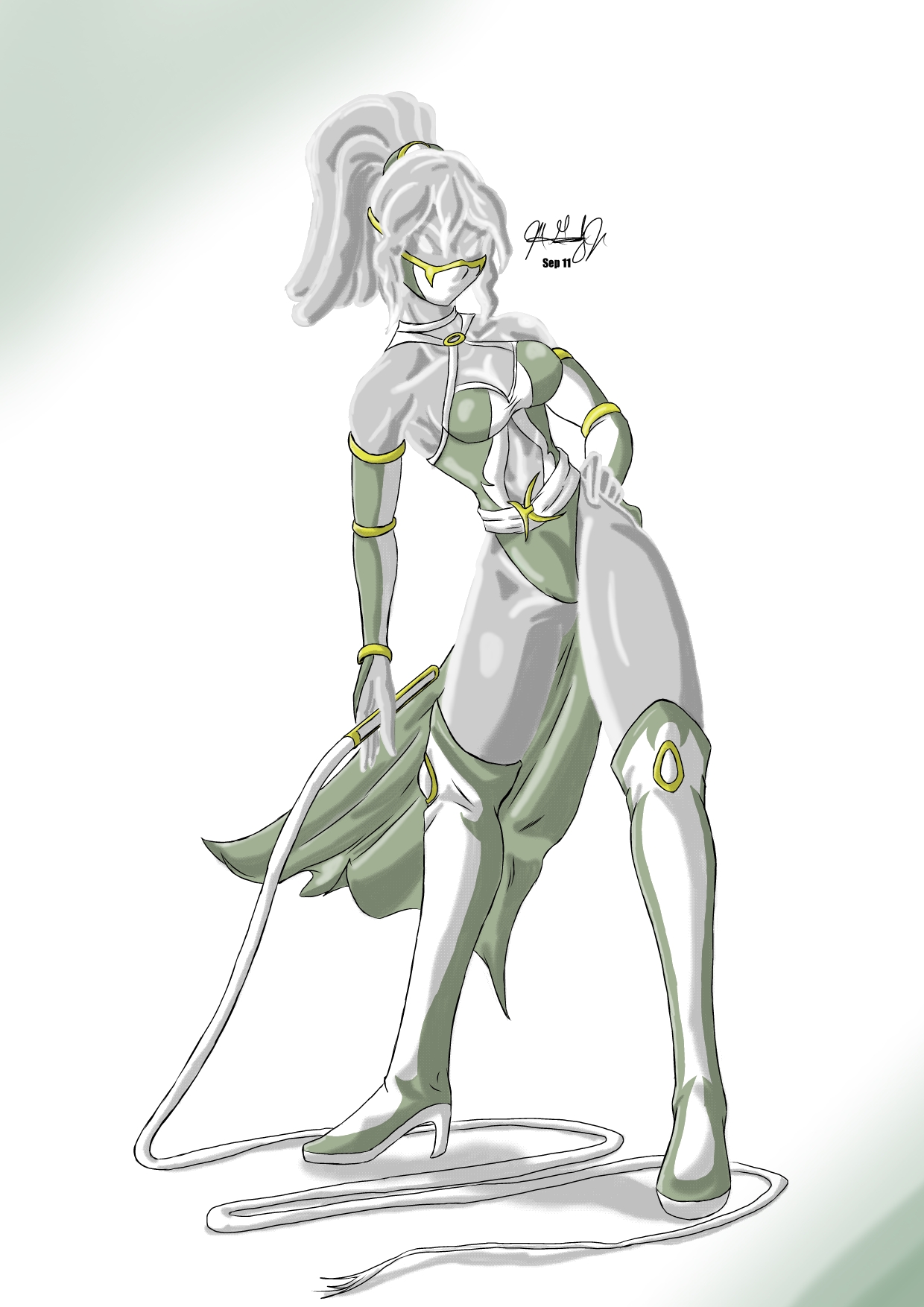 usa37107692, polyurethane (psg), panty & stocking with garterbelt, highres, 1boy, asymmetrical clothes, black background, black jumpsuit, black nails, blue eyes, blue outline, blush, boots, bracelet, character name, cropped legs, earrings, girly boy, halo, hand up, jewelry, jumpsuit, looking at viewer, male focus, midriff, one eye closed, outline, pink hair, short hair, single pantsleg, single thigh boot, sleeveless jumpsuit, smile, solo, thigh boots, waist ribbon