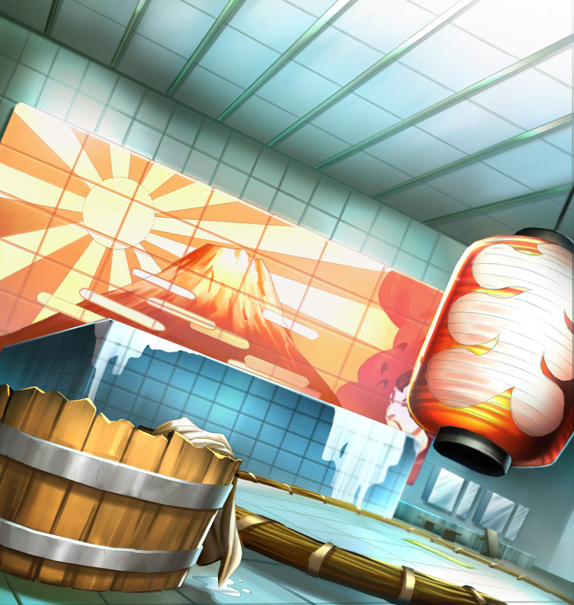 bathbenchbucketceilingclouddutch angleindoorslanternmirrormountainno humansscenerystill lifesumosuntile floortile walltilestowelwater