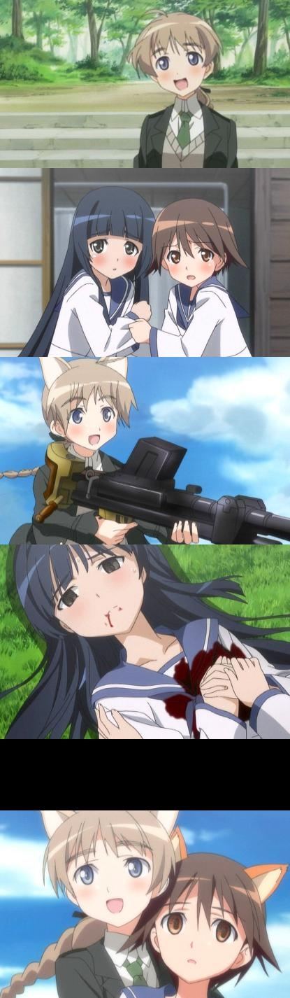 animal earsbad endbloodblue eyescomicempty eyesgunhugsilent comicwarped contextweaponyandereyuri