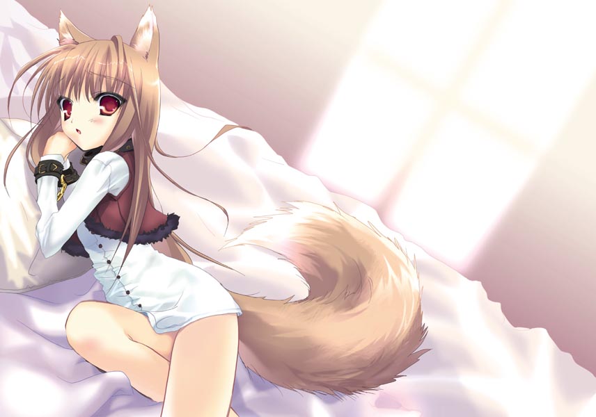 00s1girlanimal earsbdsmbedblushbondagebottomlessboundbrown eyesbrown hairchaincuffsfemale focushandcuffsindoorslong hairlooking at viewerlyingno pantsopen mouthred eyessolotailwolf earswolf tail